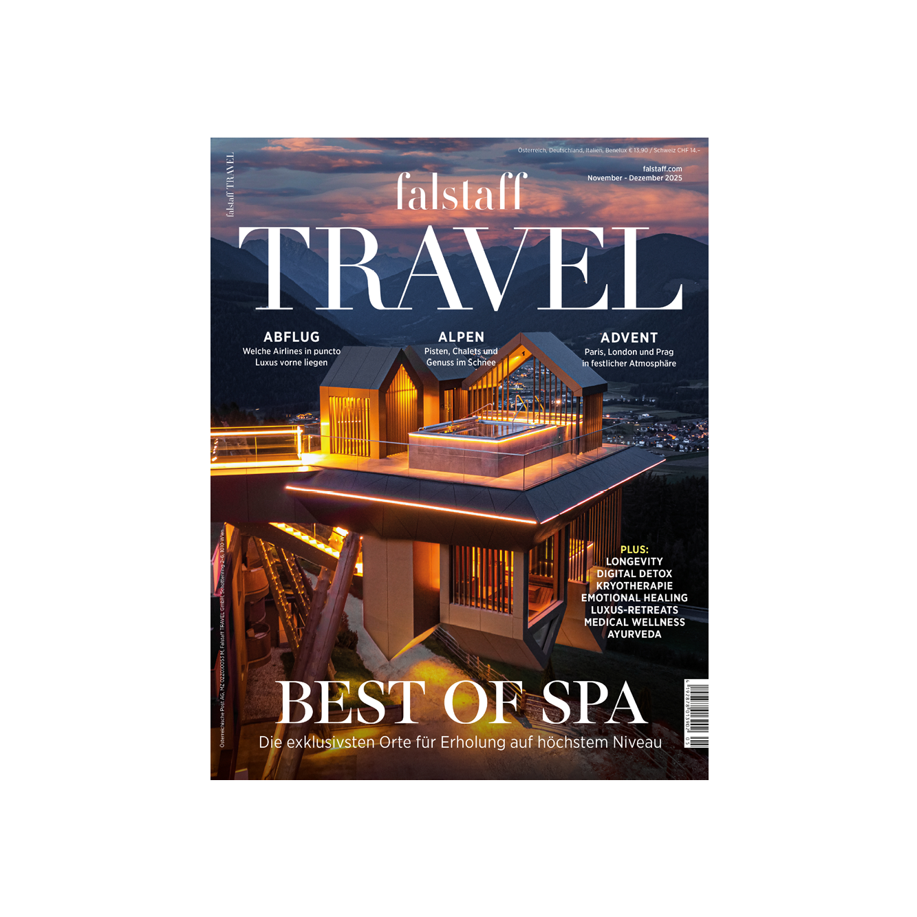 In unserem Covertitel widmen wir uns deshalb ganz dem Thema Wohlbefinden – von Kältetherapie über ganzheitliche Retreats bis hin zur Frage, warum Wellness am besten schon in der Kindheit beginnt. Und natürlich präsentieren wir auch in diesem Jahr wieder die Crème de la Crème: Ab Seite 224 finden Sie die Sieger unseres Falstaff Spa Guides 2026 – sorgfältig recherchiert, getestet und kuratiert.